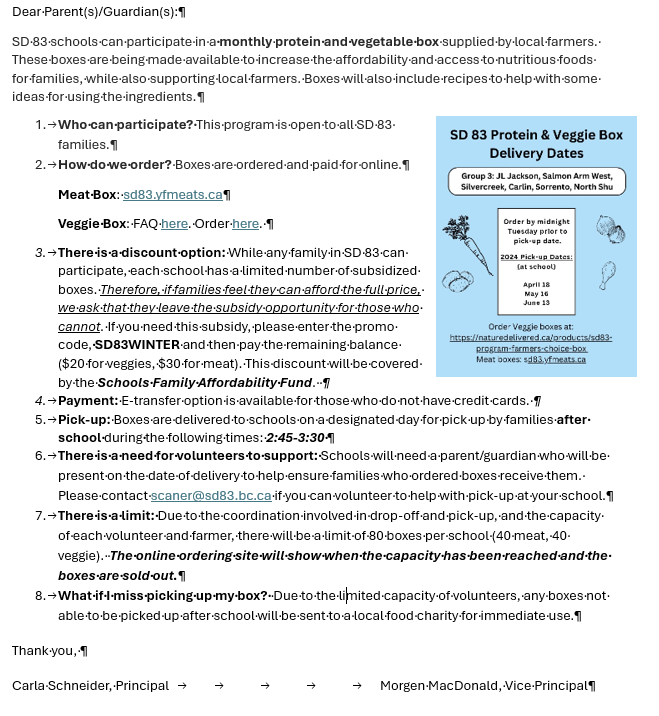 SD83 Protein and Veggie Boxes